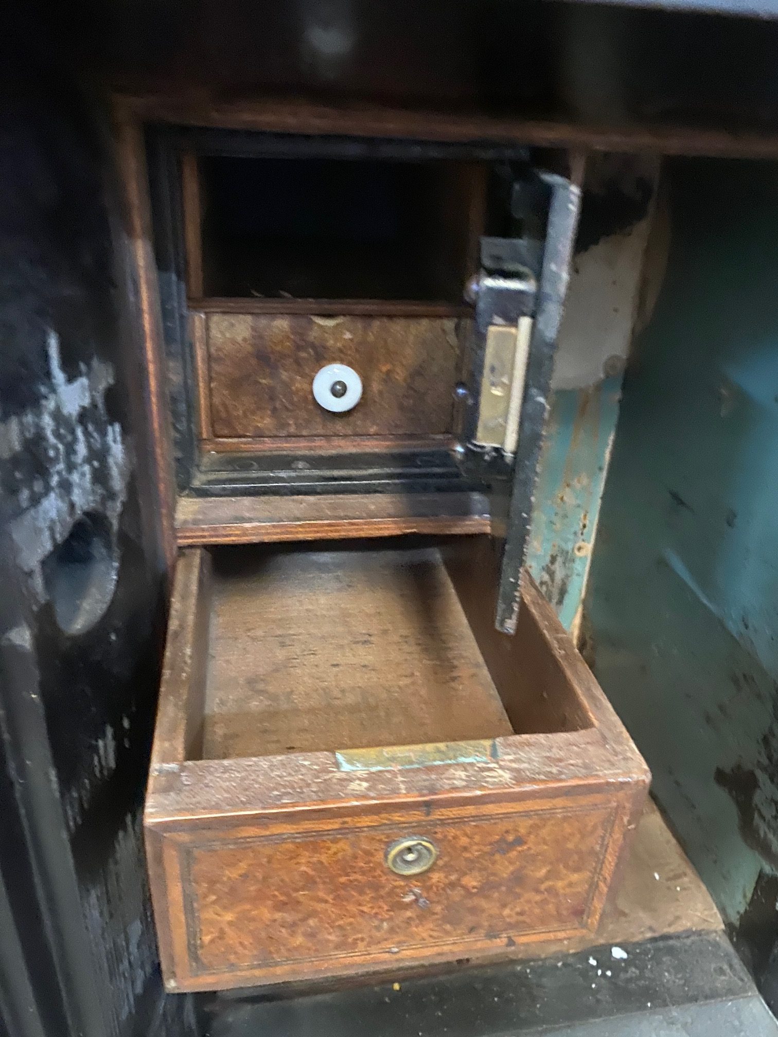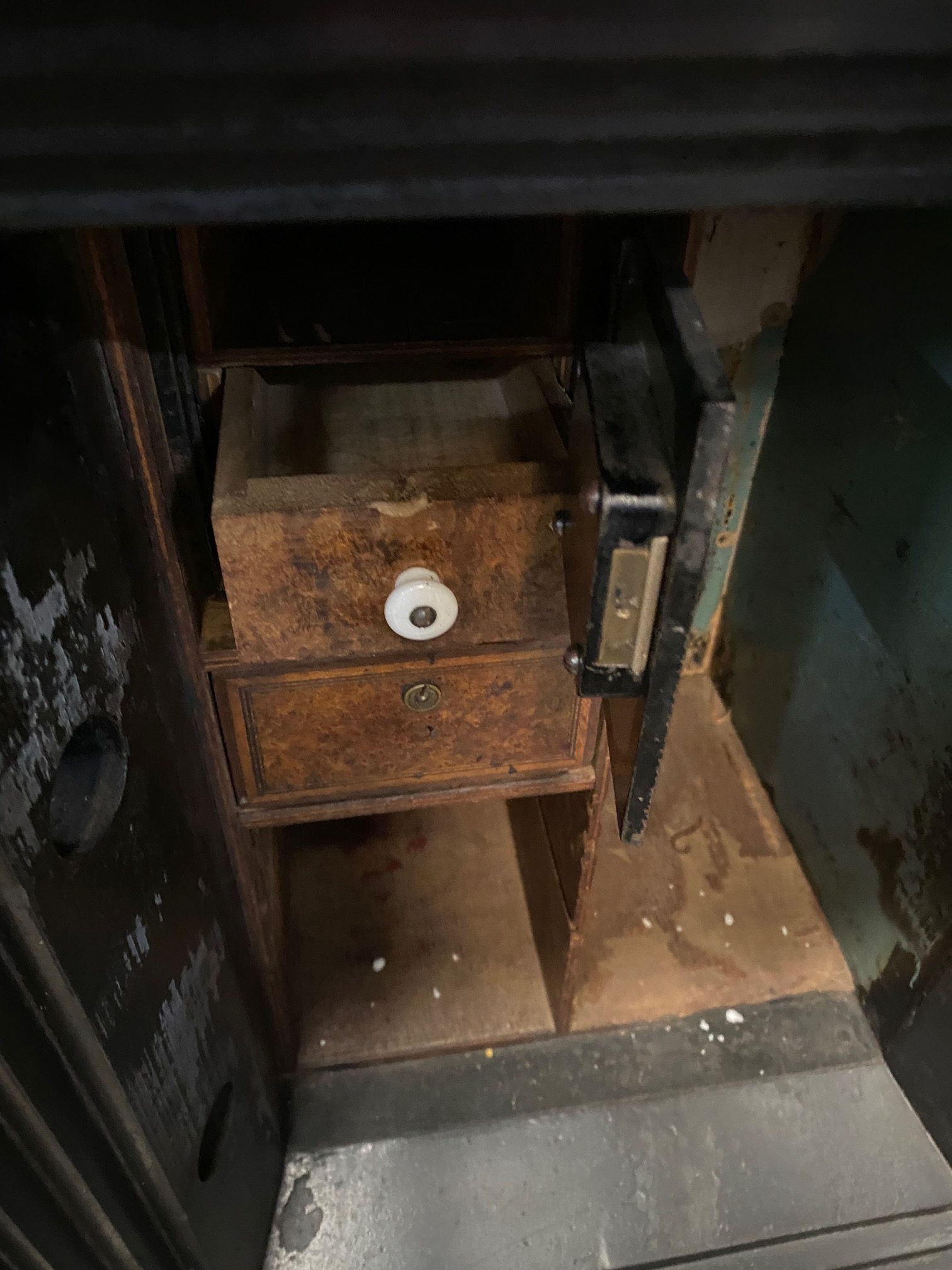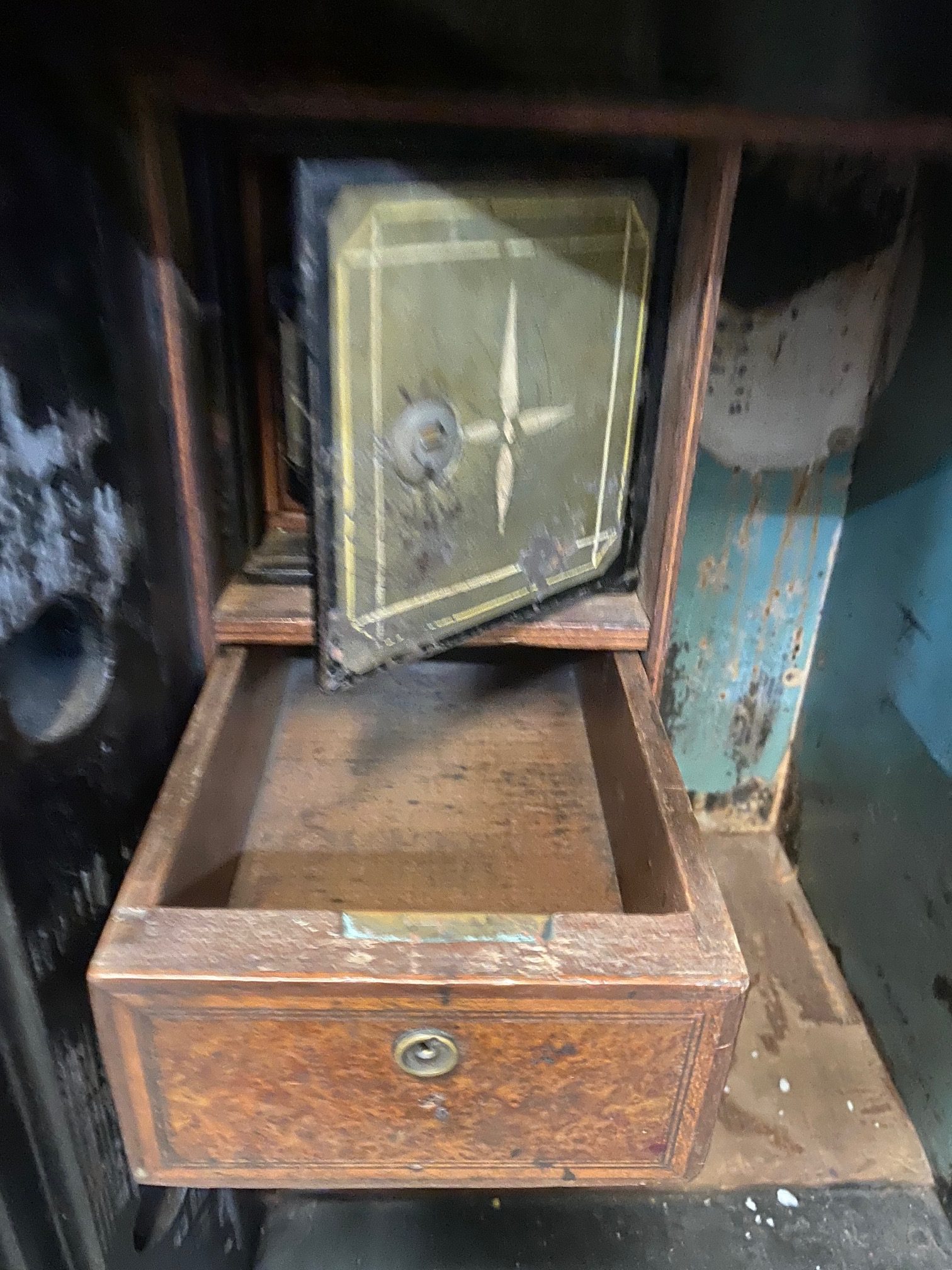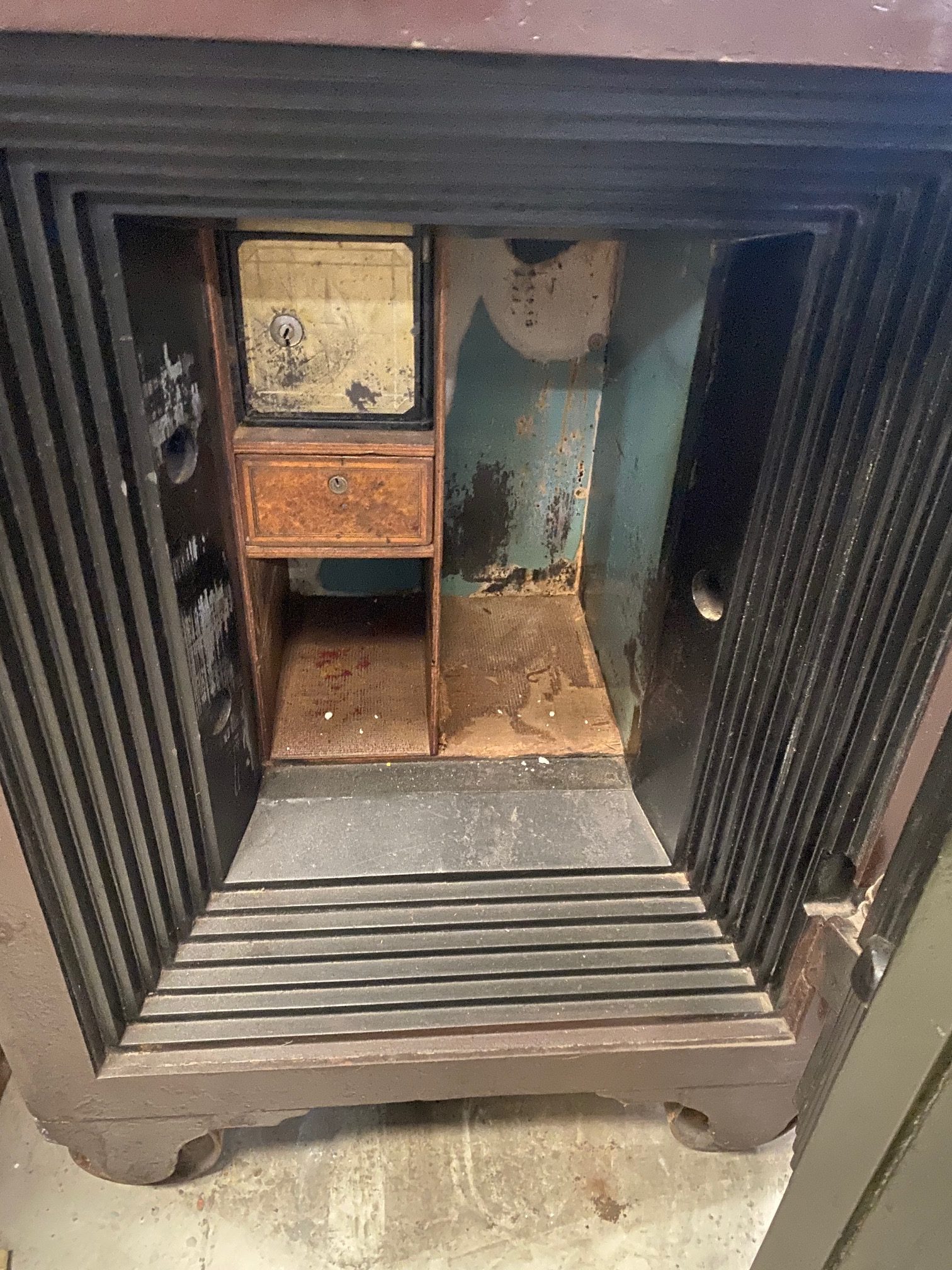 - Hand made antique safe with amazing craftmanship in perfect working order.